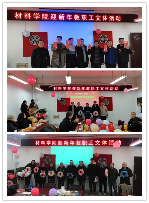 为庆祝新年,促进交流,营造“家”的和谐氛围,丰富广大教职工的业余生活,经过精心组织,材料学院分工会1月21日下午在B216学院会议室组织举行迎新年教职工文体活动。学院领导班子成员及全院教职工参加了本次活动。