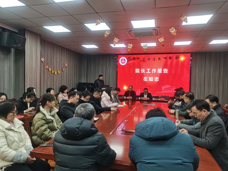 院长左如忠代表学院作题为《大调研 树目标 求奋进 重实效 实现学院发展弯道式超车》的工作报告。他从“着力强化主题教育调研,推进攻坚克难工作新举措务真务实”“着力强化双基建设目标,推进高质量教育教学工作落地落实”“着力强化团队建设目标,推进高质量学科科研工作见行见效”“着力强化管理工作目标,推进三全六专育人实践开花结果”等四个方面对学院一年来的工作进行总结回顾,并提出了学院2024年的奋斗目标,明确了中心工作、教育教学建设、师资队伍建设、学科科研建设等四个方面的主要工作任务,号召全体教职工凝心聚力抓落实、务实笃行守初心、开拓创新促发展,实现学院发展弯道式超车,为材料学院的核心竞争力提升,共同谱写事业发展新篇章。