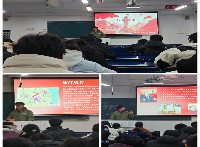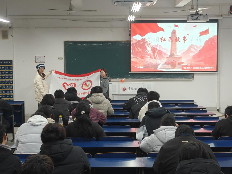 “映山红”芜湖红色文化调研项目团队走进大一、大二各班级,开展芜湖红色人物故事宣讲活动。活动依托团队前期扎实的实地调研成果,以鲜活生动的故事讲述为载体,带领青年学子走近本土红色人物,在沉浸式聆听与深度感悟中传承红色基因、厚植青春担当。