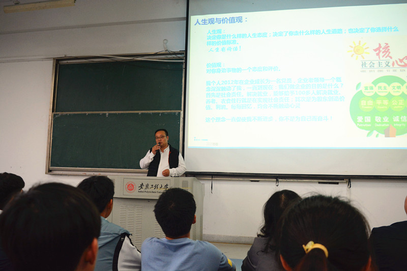 为充分发挥优秀创业校友的典型示范作用,引导同学们进一步做好职业发展规划,学习创业经验和工作方法,提升就业创业能力,11月18日下午, 亚洲色图 联合机械工程(人工智能)学院在5教217举办了校友创业大讲堂,本次校友论坛活动同时也是学院庆祝建校85周年系列活动之一。材料成型及控制工程专业2007届校友、安徽尼威汽车动力系统有限公司总经理朱超应邀作题为“职业发展与创业经验分享”的专题报告。
