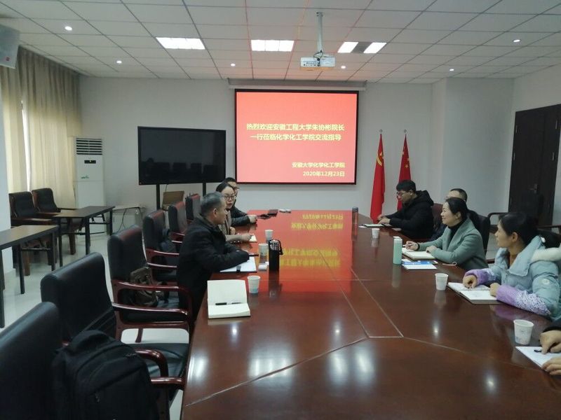 12月23日上午调研小组到安徽大学化学化工学院开展调研工作,副院长夏茹教授、周艺峰教授等热情接待。座谈会上夏茹介绍了学院总体情况,并就朱协彬提到的调研问题进行了解答,周艺峰等几位教授分别就专业建设的诸多方面进行了交流,随后一起参观了化学化工实验室及新能源材料与器件专业相关实验室。