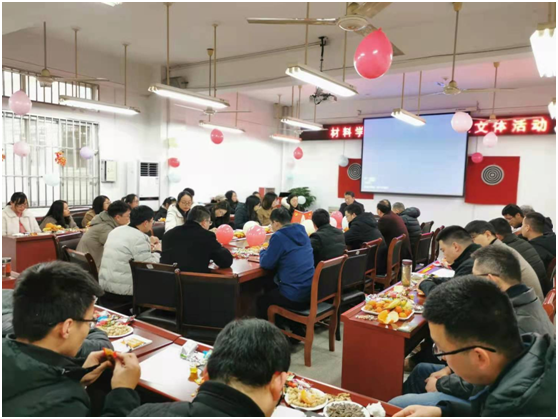 为庆祝新年,促进交流,营造“家”的和谐氛围,丰富广大教职工的业余生活,经过精心组织,材料学院分工会1月21日下午在B216学院会议室组织举行迎新年教职工文体活动。学院领导班子成员及全院教职工参加了本次活动。