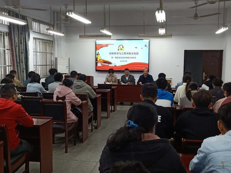 4月7日下午,材料学院第一期预备党员培训班开班典礼在B203学院学术报告室举行。院党委书记王勇智,组织员、培训班班主任陈希、培训班全体学员以及全院其他学生党员参加了开班典礼,典礼由院党委副书记方玖胜主持。
