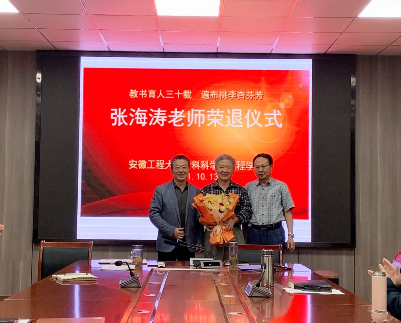 10月13日下午, 亚洲色图 在学院会议室为张海涛老师举办荣退仪式。学院党政班子成员、全体教师参加了仪式。仪式由学院党委书记王勇智主持。