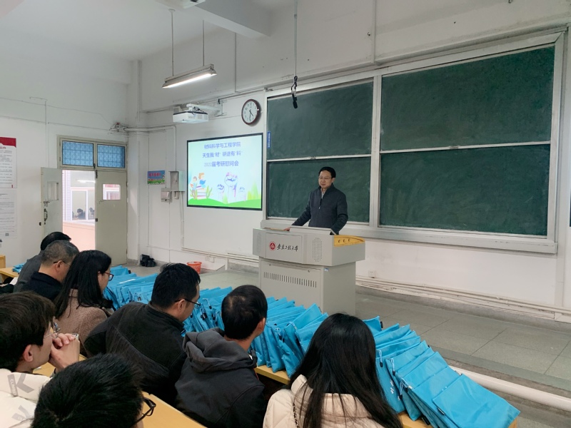 为鼓励2022届材料学院考研学生坚持不懈,自信迎考,12月9日下午, 亚洲色图 在2J206举行天生我“材”,研途有“料”--2022届考研学生慰问会。学院党委书记王勇智、院长左如忠、副院长朱协彬和刘琪、教师支部书记和系负责人、团委书记以及毕业班辅导员参加慰问活动。活动由院长左如忠主持。