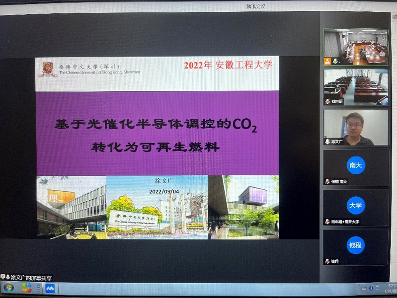 涂文广介绍了《基于光催化半导体调控的CO2转化为可再生燃料》的相关工作,以太阳能为驱动,将二氧化碳等小分子催化转化为高附加值化学品,是构建人工碳循环、实现“碳中和”的有效途径。