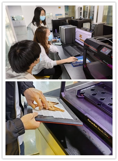 之后,同学们跟着研究生学长学习3D打印机的使用,并自己动手操作打印了一些文创作品。