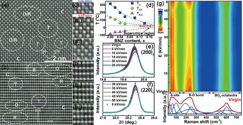 图2. 多种对称性共存的局域结构以及加载/卸载电场过程中平均结构和局域结构的演变