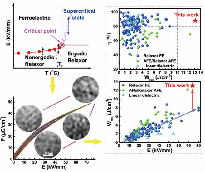 图1. 超临界弛豫铁电储能材料的设计思路与储能性能