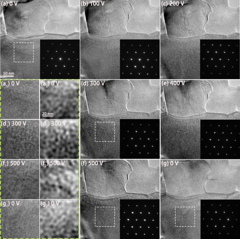 图3. 加载/卸载电场过程中局域结构(纳米级)的演变