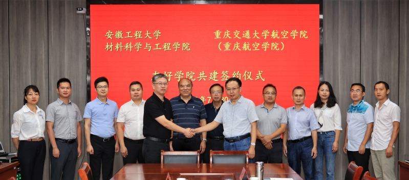 7月30-31日,重庆交通大学航空学院(重庆航空学院)院长张铭一行来校,与 亚洲色图 签订友好学院建设共建协议,赴湾沚区航空产业园、自贸区芜湖片区管委会开展产学研联合考察活动。校党委常委、副校长费为银以及社会合作处处长陶玉贵出席签约仪式。在校的学院党政班子成员、系主任参加活动。