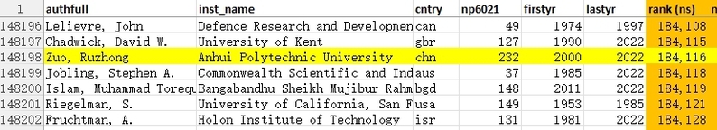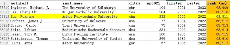 原榜单链接:Ioannidis, John P.A. (2022), “September 2022 data-update for Updated science-wide author databases of standardized citation indicators”, Mendeley Data, V4, doi: 10.17632/btchxktzyw.4 ()