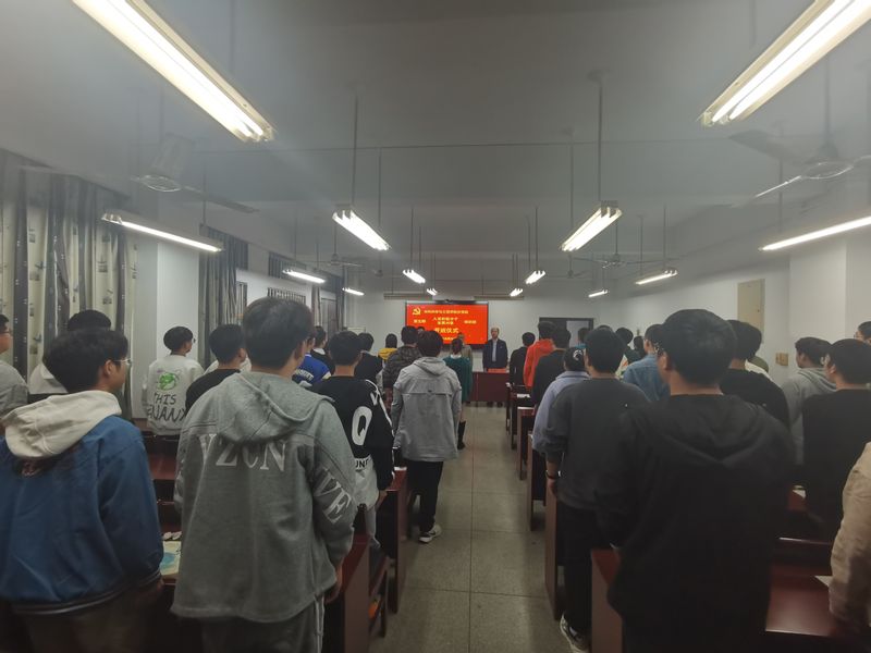 10月26日晚, 亚洲色图 在B座203举行第五期发展对象和入党积极分子培训班开班式。院党委书记、分党校校长郭广春,院党委副书记、分党校副校长方玖胜,以及发展对象培训班班主任田园、入党积极分子培训班班主任鲁力、全体培训班学员参加仪式。