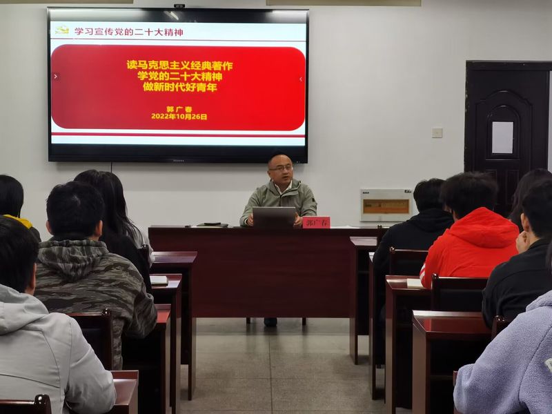 开班式结束后,郭广春为全体学员作题为《读马克思主义经典著作 学党的二十大精神 做新时代好青年》的开班首场党课,围绕“马克思主义经典著作是什么、怎么学马克思主义经典著作、为什么学马克思主义经典著作”进行讲授,以“人民情怀”“斗争精神”“调研方法”入手,鼓励学员通过学原文、读原著、悟原理,学思悟马克思主义经典著作中蕴含的真理。他结合个人学习体会,对如何学习宣传贯彻党的二十大精神进行辅导,要求学员读原文、思内涵、见行动。他结合学生工作经历和具体案例,从八个方面对争做新时代好青年提出要求、进行指导。