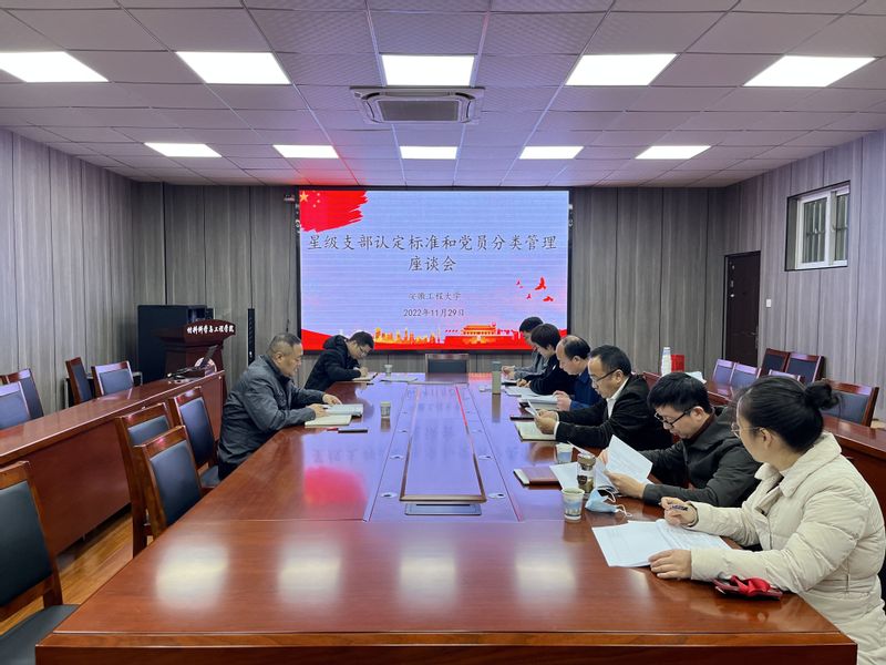 11月29日下午,校党委常委、党委组织部部长王弘在 亚洲色图 调研星级支部认定和党员分类管理工作。 亚洲色图 党委书记郭广春、副书记方玖胜以及组织员陈希、材科专业学生党支部书记田园,纺织服装学院党委副书记梁雪松,团委书记陈倩参加调研座谈会。