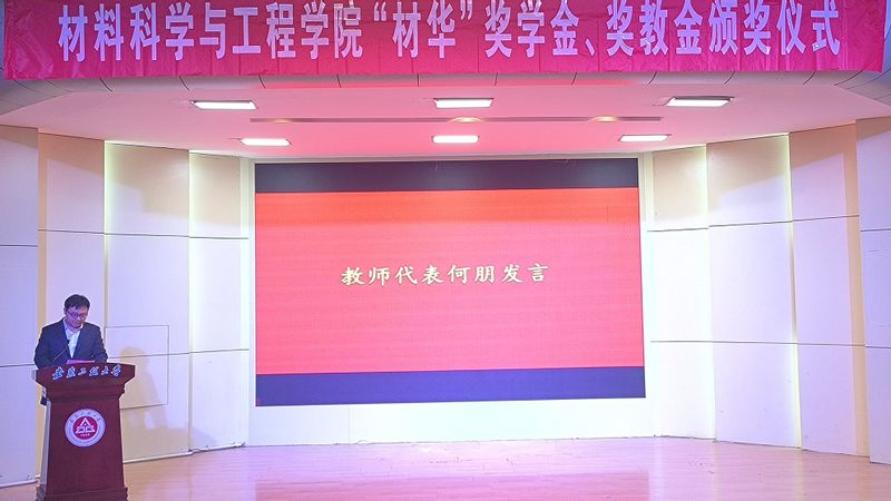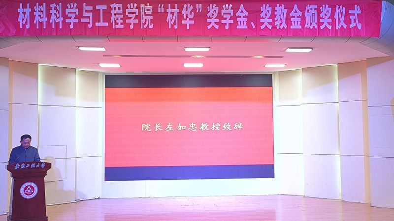 院长左如忠致辞,对获得“材华”奖教金的老师、奖学金的同学表示祝贺!鼓励他们再接再厉,戒骄戒躁,脚踏实地、埋头苦干,在攀登知识高峰中追求卓越,在为祖国和人民奋斗中书写青春的灿烂篇章!