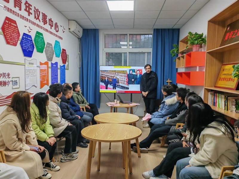 为进一步贯彻落实学校党委“三全六专”育人工作要求,围绕“学起来”推深做实个性化人才培养,12月9日, 亚洲色图 在宿舍青年议事中心成功举办英语口语训练营第一期主题沙龙活动。校国际交流与合作处副处长张文明、学院党委副书记方玖胜、学院外籍博士后Dr.Attaur、教师代表周聪以及训练营培训学员参加。活动由陈婉婷、谢爱文老师主持。