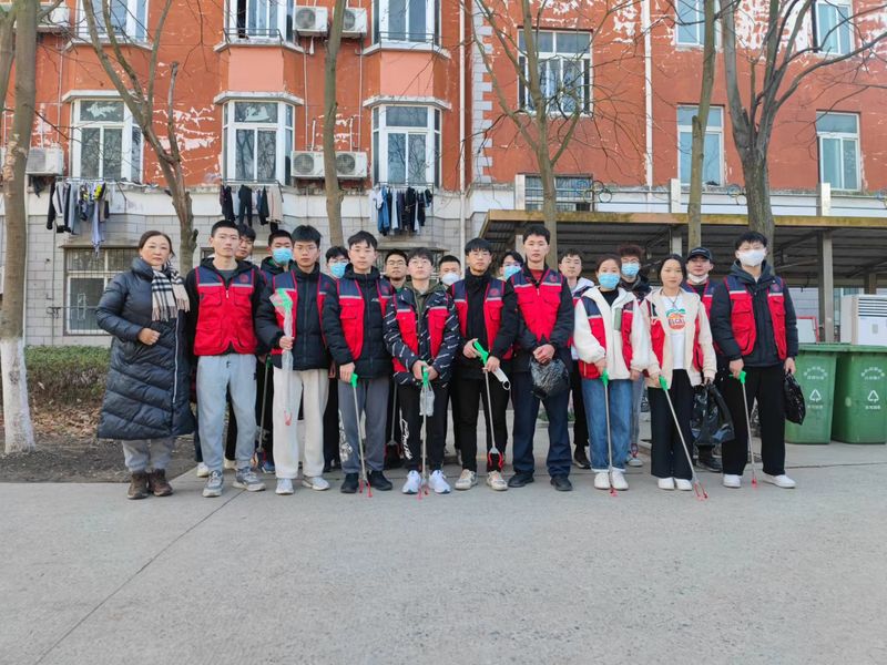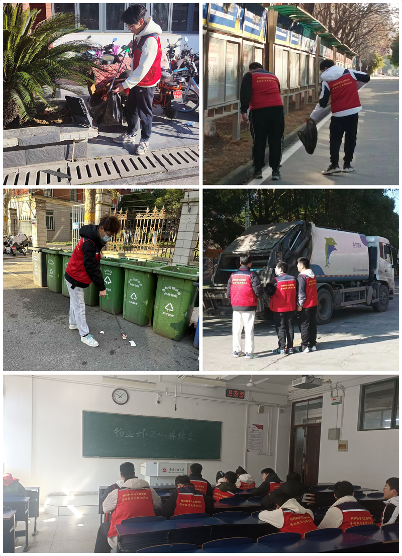 进一步做实“三全六专”育人实践,培育大学生认识劳动、尊重劳动意识,2月26日上午, 亚洲色图 第一期劳动教育先锋示范班在学校丹田物业公司的指导下开展“文明校园我先行”校园清扫活动。