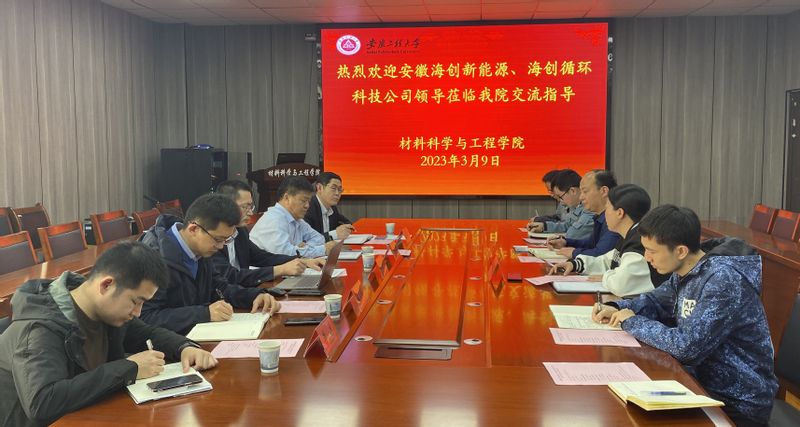 3月9日下午,安徽海创新能源材料有限公司张洪常副总经理、孟浩南技术总监、王瑞廷总经理助理,安徽海创循环科技有限公司余永教副总经理、生产技术部部长李洋等一行来 亚洲色图 洽谈交流合作事宜。双方在B座216会议室举行了产学研对接会, 亚洲色图 党委副书记方玖胜主持会议,副院长刘琪教授,以及新能源方向的青年博士教师参加了会议。