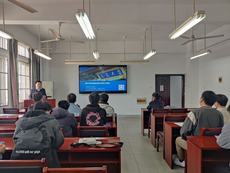 在B203先后举办江苏中超航宇精铸科技有限公司和南京中和至诚信息技术有限公司专场招聘宣讲会,毕业班辅导员和学院2023届部分毕业生们参加此次招聘会。