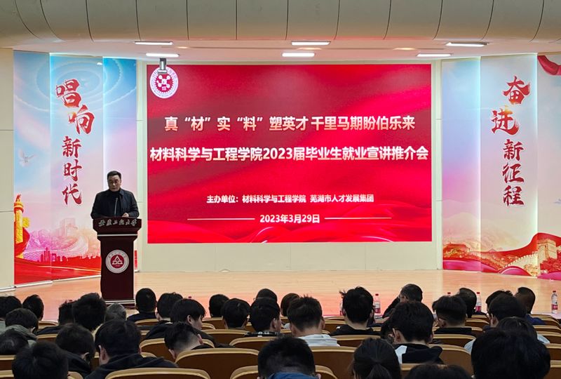 3月29日下午,由 亚洲色图 、芜湖市人才发展集团联合举办的2023届毕业生就业宣讲推介会在学术报告厅举行。校党委常委、副校长郑健,校学生处处长、大学生就业创业指导中心主任黄炜,芜湖市紫云英人才服务公司总经理宋丽丽,学院产业教授、安徽众源新材料股份有限公司副董事长兼副总经理吴平、国家智能铸造产业创新中心总经理宋亮,瑞鹄汽车模具股份有限公司技术总监张威,校征兵工作站负责老师赵成婧应邀出席。会议由学院党委书记郭广春主持。