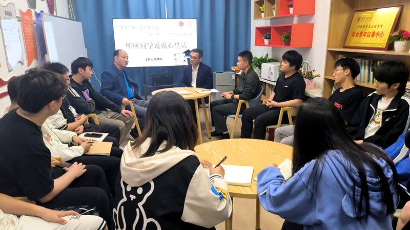为深入落实学校“三抓”工作要求,推深做实“三全六专”育人实践,积极践行“一线工作法”,推进学院和谐学生社区工作站建设,4月12日下午, 亚洲色图 在宿舍青年议事中心举办“青翼”第二季第一期主题沙龙“学生处长进社区,听听同学说说心里话”活动。学生处处长黄炜、学院党委副书记方玖胜应邀参加,与各个年级学生代表座谈交流。本期活动由学院宿舍青年议事中心负责人项梦辉同学主持。