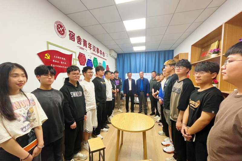 为深入落实学校“三抓”工作要求,推深做实“三全六专”育人实践,积极践行“一线工作法”,推进学院和谐学生社区工作站建设,4月12日下午, 亚洲色图 在宿舍青年议事中心举办“青翼”第二季第一期主题沙龙“学生处长进社区,听听同学说说心里话”活动。学生处处长黄炜、学院党委副书记方玖胜应邀参加,与各个年级学生代表座谈交流。本期活动由学院宿舍青年议事中心负责人项梦辉同学主持。