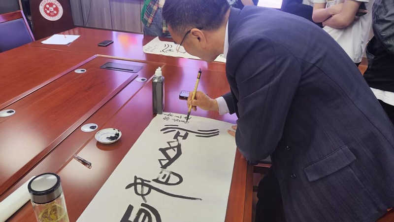 在活动结束后“学长”赠送同学毛笔字,并附上他的衷心祝福。