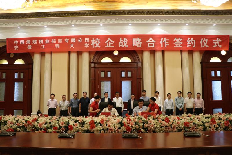 5月16日下午,亚洲色图 与中国海螺创业控股有限公司战略合作协议签约仪式在海螺国际会议中心举行。校党委书记张志宏、校党委副书记、校长卢平,校党政办、组织部、宣传部、科技处、人事处、教务处、社会合作处以及 亚洲色图 负责人,中国海螺创业控股有限公司董事长郭景彬、常务副总经理疏茂、副总经理李剑以及人力资源部、综合管理部、安徽海创循环科技有限公司、安徽海创新能源材料有限公司负责人出席签约仪式。