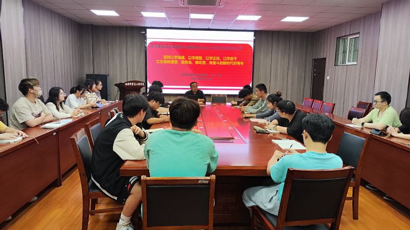 5月23日晚, 亚洲色图 党委书记郭广春面向学院团委理论学习中心组成员、全体团支书、班长讲授主题教育党课,围绕“三全六专”育人实践课程化与同学们座谈。
