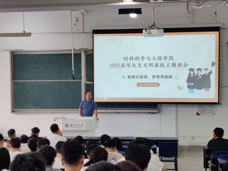 为营造健康、文明、有序、和谐的毕业生离校氛围,增强毕业生爱校荣校情怀,5月26日下午, 亚洲色图 在5J217举办2023届本科毕业生文明离校主题班会。学院党委副书记方玖胜出席会议并讲话,全体毕业生参加此次文明离校主题班会,会议由毕业班辅导员周冬梅主持。