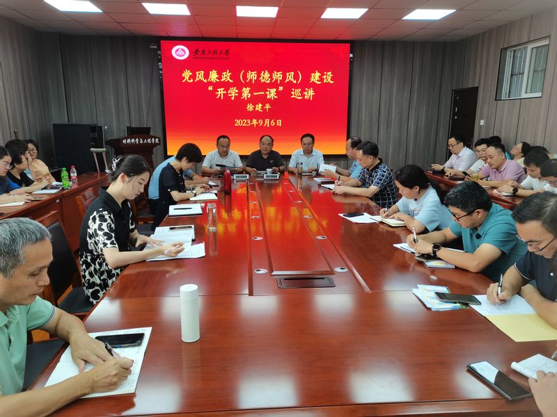 徐建平围绕加强党风廉政和师德师风建设主题讲授微党课。他指出,学校党委高度重视党风廉政和师德师风建设,并专门策划党风廉政(师德师风)建设“开学第一课”巡讲活动。他肯定了 亚洲色图 近年来的发展成绩,认为发展成绩离不开坚强有力的领导班子、离不开广大教师特别是青年教师的自觉奋斗,但是风清气正的政治生态和良好的师德师风是发展的保障和基础,务必高度重视、持之以恒抓好。他解读了党风廉政和师德师风建设的相关制度规定,特别是“一岗双责”、廉洁自律以及师德师风纪实台账等。他结合发生在身边的典型案例,剖析产生问题的危害,希望党员领导干部和全体教职工引以为鉴,在社会上做一个好公民、在单位上做一个好员工、在家庭上做一个好成员。他希望材料学院在抓好科研工作的基础上,要主动推进有组织、有计划的教学能力提升活动,认真培育具有学院特色的师德示范团队。巡讲结束后,徐建平在学院纪委书记方玖胜的陪同下检查了学院师德师风纪实台账管理使用情况,对学院领导班子履行“一岗双责”情况进行调研。