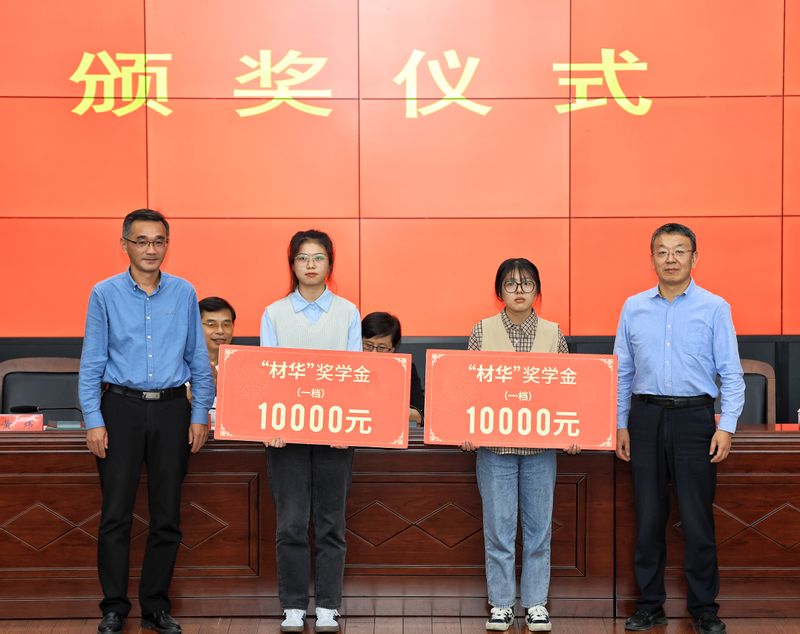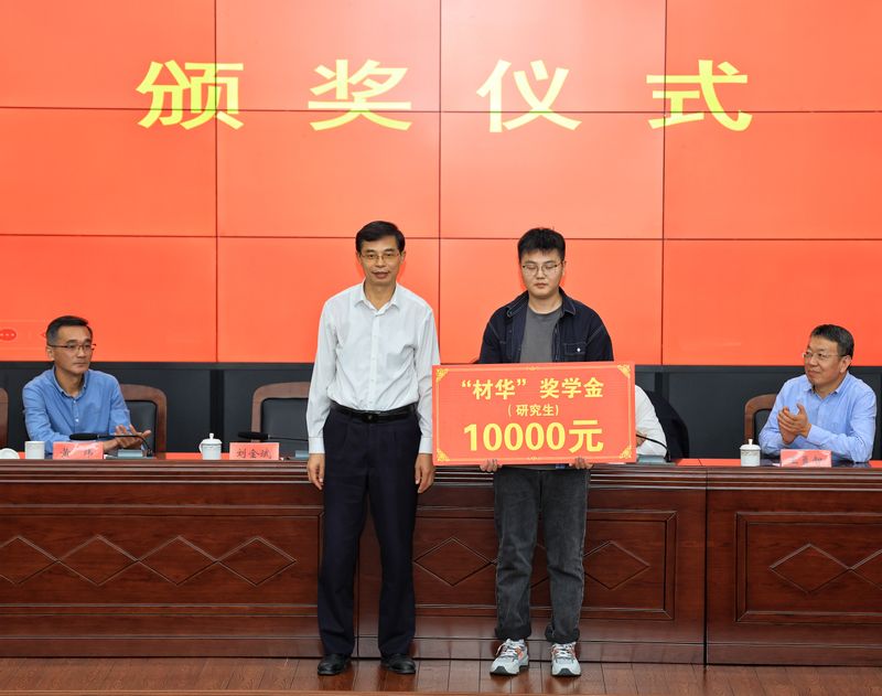 苏国红、李源林共同为获得“材华”奖教金的老师颁奖。刘金斌、王勇智、黄炜、方玖胜、陶锋分别为获得“材华”奖学金的学生颁奖。