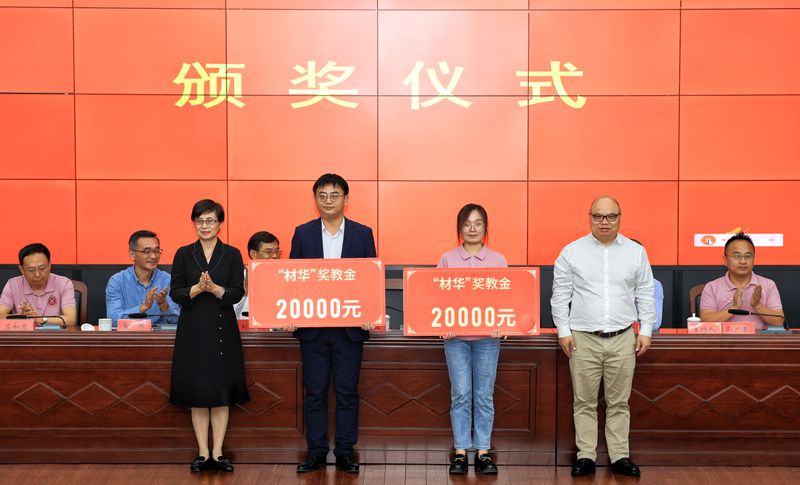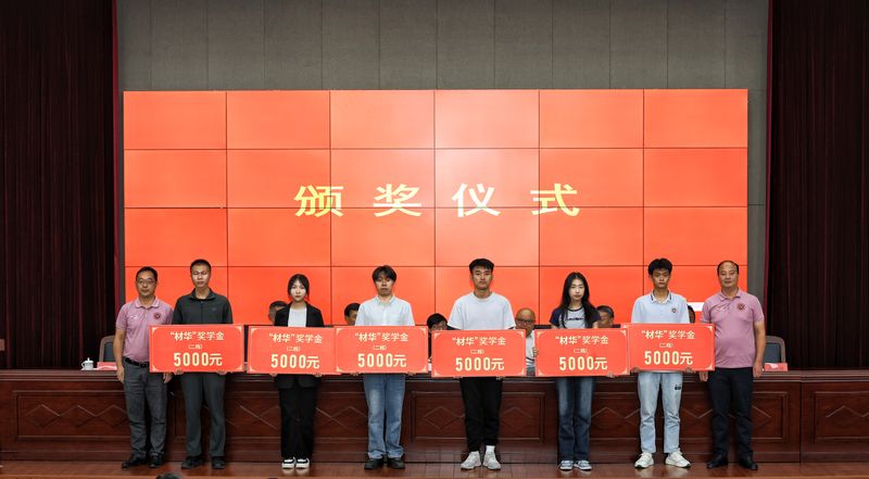 苏国红、李源林共同为获得“材华”奖教金的老师颁奖。刘金斌、王勇智、黄炜、方玖胜、陶锋分别为获得“材华”奖学金的学生颁奖。