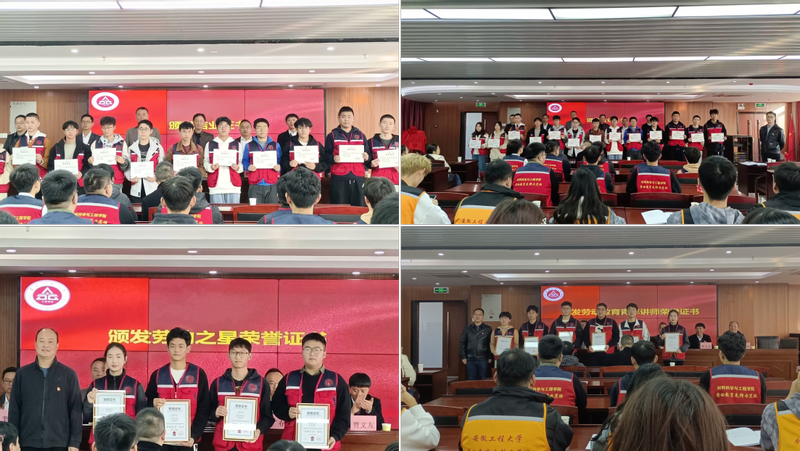 在仪式上,教务处副处长贾文友、胡小波代表双方签订了现代劳动教育示范基地共建协议;校团委书记李恒奎、胡小波共同为“现代劳动教育示范基地”揭牌;与会领导为第一期劳动教育先锋示范班成员颁发了结业证书、为第二期劳动教育先锋示范班成员颁发了录取通知书;国际工程师学院和谐社区党委书记、学生处副处长郭全根为第二期劳动教育先锋示范班授旗; 亚洲色图 党委副书记方玖胜、副院长陶锋分别为第一期劳动教育先锋示范班成员颁发了青年讲师荣誉证书、劳动之星荣誉证书。