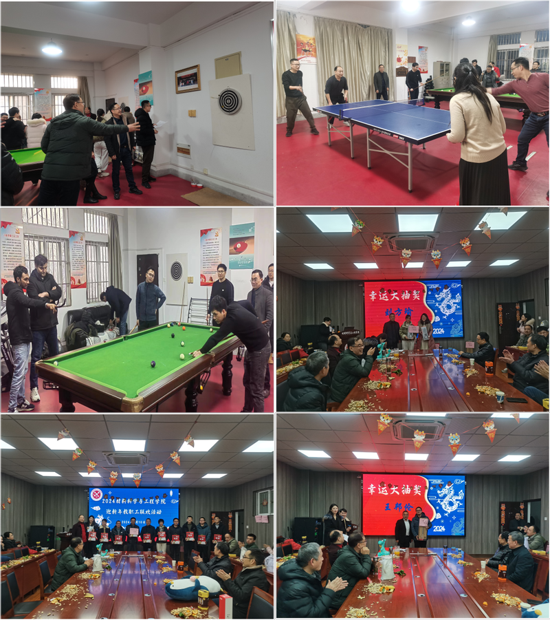 联欢活动由飞镖比赛、通俗桥牌比赛、乒乓球比赛、台球比赛和包饺子等活动组成,中间还穿插了幸运大抽奖环节,现场的教职工踊跃互动,趣味十足。