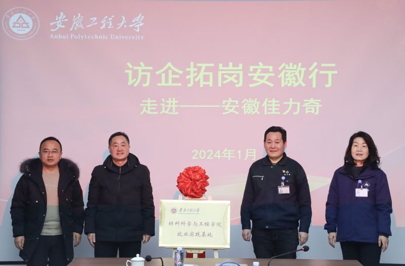 为贯彻落实教育部深入开展访企拓岗促就业专项行动要求,落实省委、省政府关于开展“人才安徽行”系列活动部署要求,全力推动学院毕业生高质量充分就业,1月24日下午,校党委常委、宣传部(统战部)部长孙浩然,以及 亚洲色图 党委书记、本科生、研究生辅导员一行4人赴安徽佳力奇先进复合材料科技股份公司开展“访企拓岗安徽行”活动。