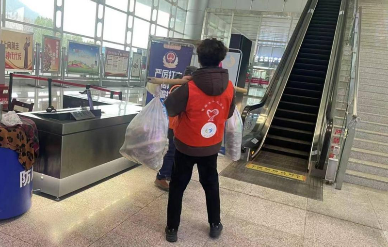【铜陵站】在忙碌的客流中,有一个红色的身影十分显目,团队成员汪天沐同学正在一次又一次地帮助老人和有需要的特殊人群,帮助他们将沉重的行李物品搬到指定地点,协助高铁北站有序地开展工作,守护“温暖回家路”,展现青年的良好风貌。通过一次次贴心服务、一句句暖人话语、一声声关切问候,彰显青年的责任与担当。