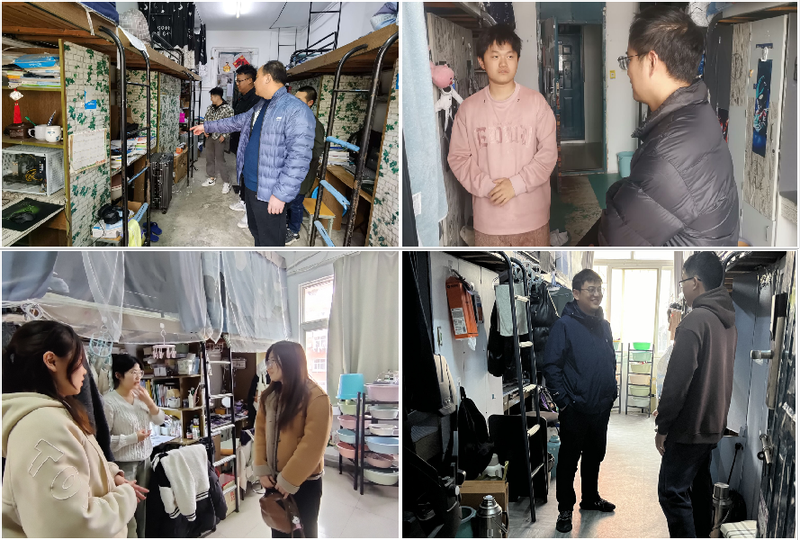 下午2点,方玖胜带领专兼职辅导员深入一线 “进楼入室”,分年级组走访全院学生宿舍,与同学们亲切交流,查看宿舍卫生情况,了解学生的思想、学习、生活状况,走访中学院领导老师指出宿舍建设存在的卫生、安全、制度未落实等问题,要求一同参与检查的各班级生活委员认真梳理存在的问题,督促整改到位。