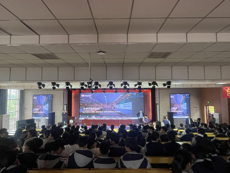 宣讲过程中,金艾裙、陶锋详细介绍了学校学科专业设置、个性化人才培养模式和2024年本科生招生工作等相关情况。专题报告开始前专门播放了学校招生宣传片。