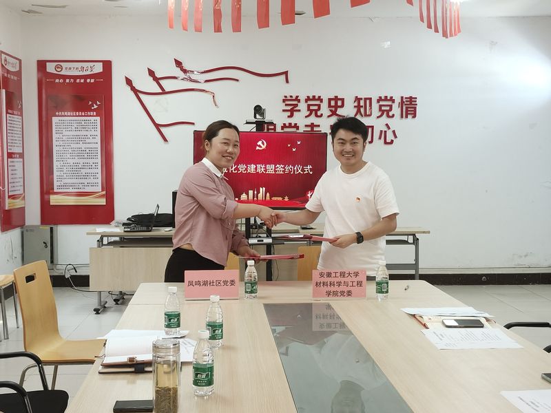 5月18日上午, 亚洲色图 学生党支部与凤鸣湖社区党组织共同开展了“共建共学”主题党日活动。结合党纪学习教育,开展了支部联学,深入交流研讨、凝聚思想共识,期间续签了共建协议,进一步推进校地基层党组织共建,落实落细我校“三抓”工作要求,提升学生党员参与社区治理的志愿服务意识,激发党建引领社区治理效能。材控、材科专业学生党支部书记鲁力、周冬梅带队,支部党员、“含笑花”志愿服务团队、劳动教育先锋示范班、材料科学社学生代表参加。