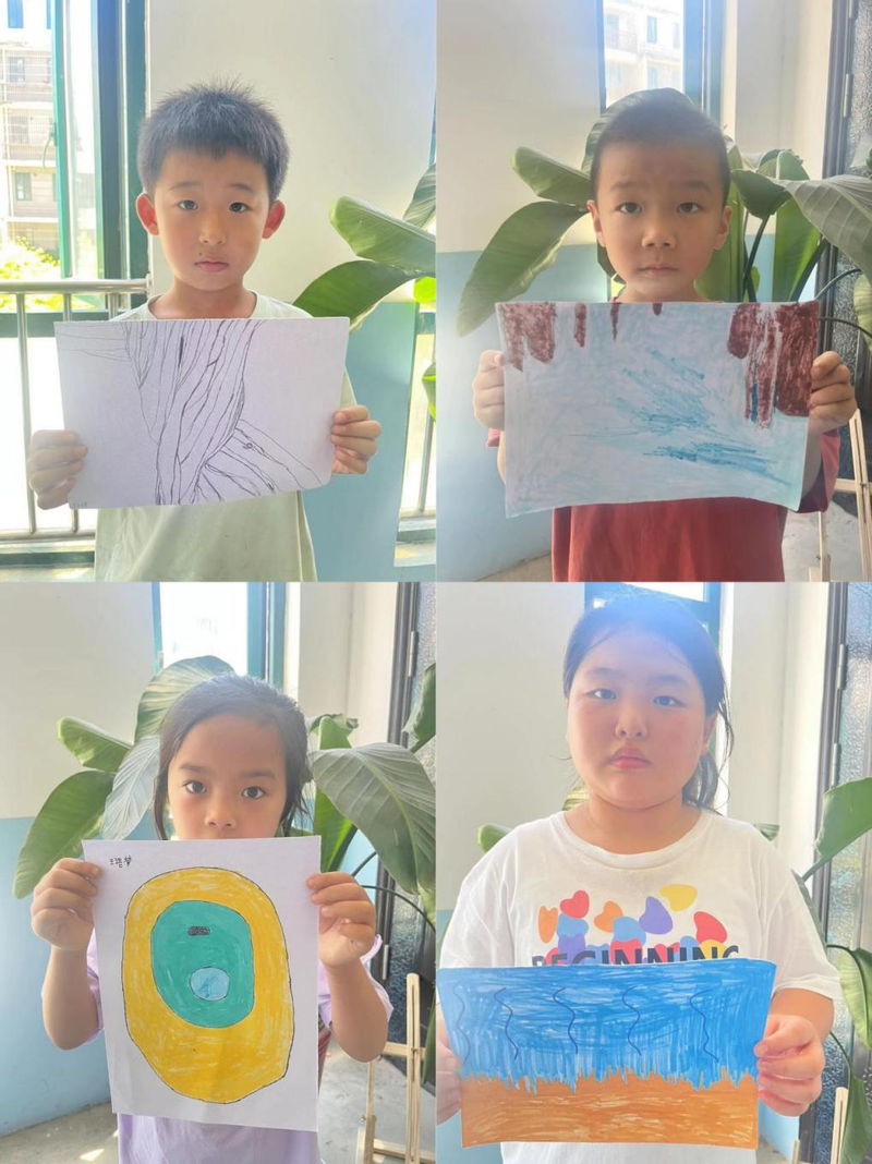 实践环节,志愿者列举了几种不同的钢材料,介绍了他们的不同之处,并以提问互动的形式教小朋友们进行辨别。随后,志愿者带领小朋友体验钢材料的打磨。通过观察,小朋友们了解到不同钢材料因打磨工艺不同会使材料表面的纹理与结构呈现出各种各样的形状。最后小朋友们展开想象,对已有的结构图进行填色与创作,得到了五彩缤纷且各具特色的作品。