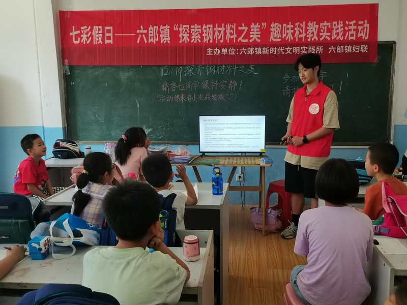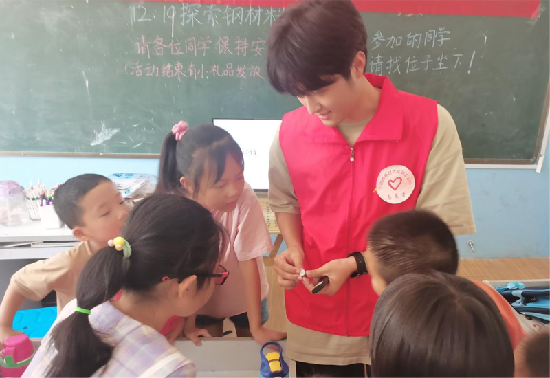 为进一步丰富六郎镇暑期文明实践志愿活动,向青少年弘扬科学精神,普及科学知识,提高小朋友动手能力,推动青少年科学素养的全面提升。7月30日, 亚洲色图 含笑花“公益N+1”困境儿童帮扶团队、真“材”实“料”乡村振兴实践团队、材料科学社联合六郎镇开展“探索钢材料之美”趣味科教实践活动。