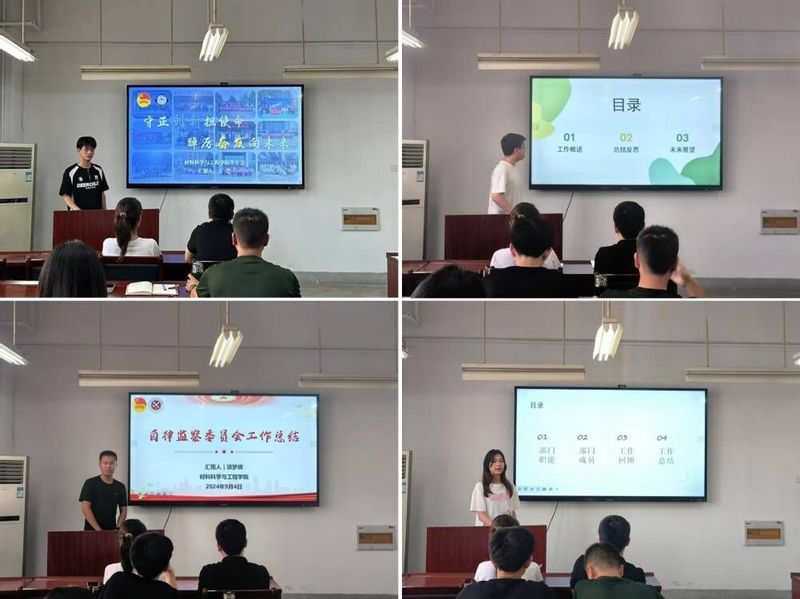 学院第四届团委、学生会各部门依次从部门简介、工作开展情况、总结与反思等方面依次进行述职。