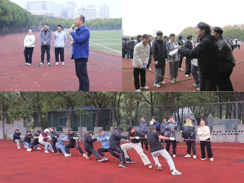为让学生走出教室、走出课堂,释放压力、增加班级凝聚力,提升大学生心理健康素养,12月4日下午,学院在第二田径场举办“12·5”心理健康节拔河比赛,院党委副书记方玖胜、团委书记田园、辅导员周冬梅来到现场为参赛选手们加油鼓劲。全院大一、大二年级以班级为单位组队参赛,同学们纷纷以极大的热情参与到此次活动中,全院共10支队伍,比赛实行淘汰制晋级方式,抽签分组决定比赛顺序。经过激烈角逐,最终材科231班获得一等奖,新能源材料231班、242班获二等奖,材控231班、材科241班获得三等奖。