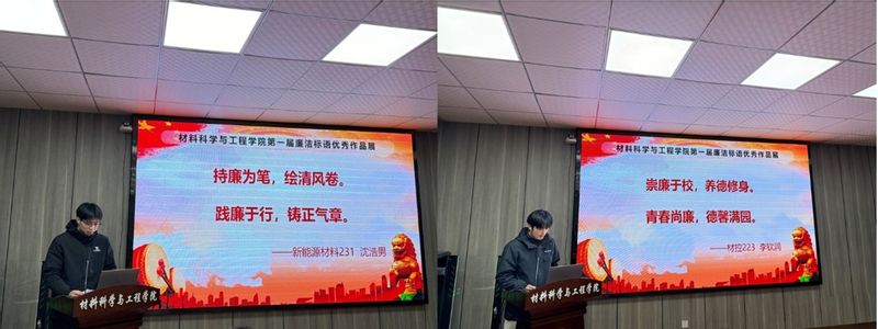 方玖胜宣读了学院第一届廉洁标语征集活动评选结果。与会领导为优秀组织奖和个人优秀作品奖获得者颁发荣誉证书和奖品。