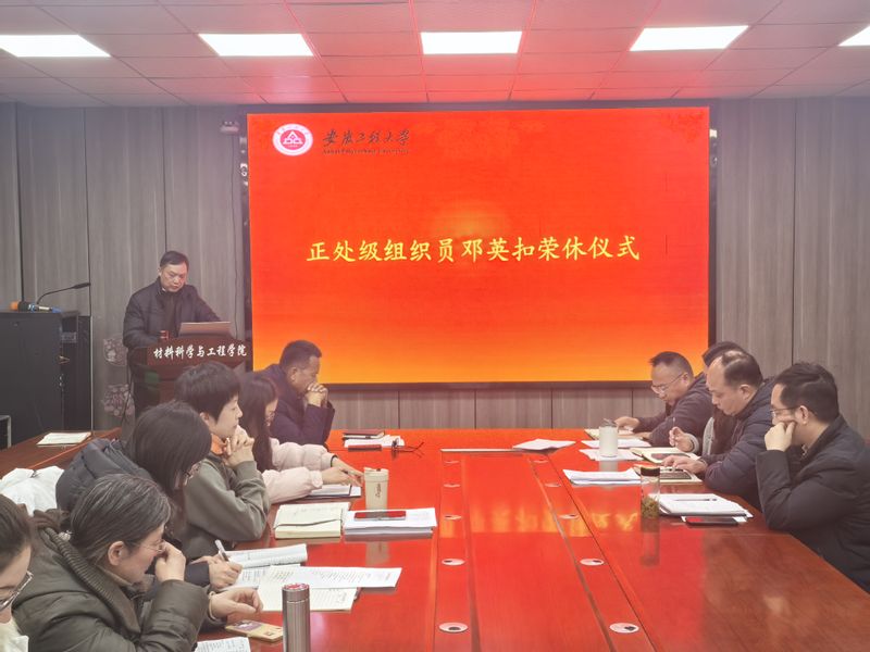 2月19日下午, 亚洲色图 在B216会议室召开全体教职工大会,为正处级组织员邓英扣同志举行荣休仪式。荣休仪式由郭广春主持。