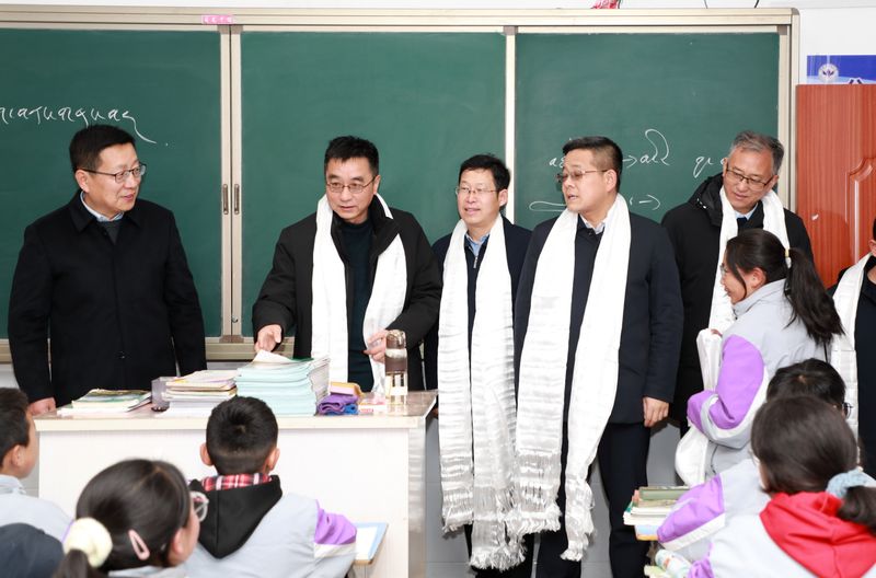 郑健一行在铜陵五中校党总支书记徐松成和党总支副书记、校长朱卿的陪同下参观了学校铸牢中华民族共同体意识主题墙,实地查看了西藏生宿舍和食堂,了解了西藏学生日常学习生活情况。
