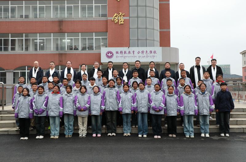 随后,郑健一行走进错那初中代培班教室,看望首届错那班师生,给藏族学生赠送了慰问礼品并一起合影留念。