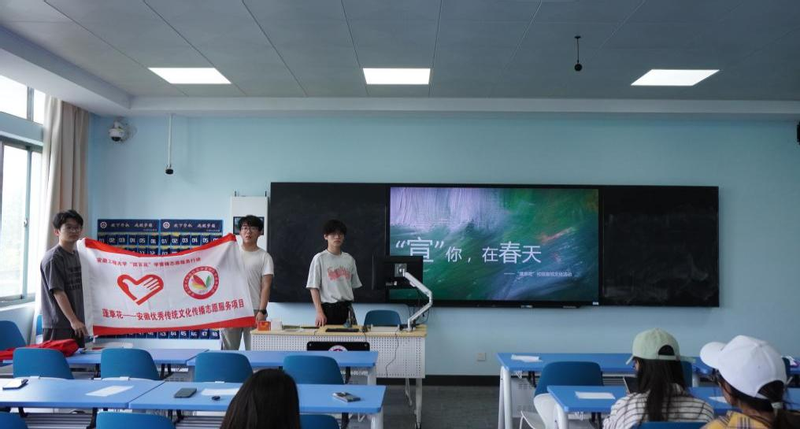 5月18日, 亚洲色图 “蓬草花”团百花志愿服务团队在6 教 301教室举办 “宣纸文化传承与实践” 主题活动。“蓬草花”志愿服务队队长王诺带领同学们沉浸式体验宣纸制作技艺,通过“理论讲解 + 实地影像 + 手工实操”的立体形式,揭开安徽国家级非遗——宣纸工艺的神秘面纱,引领青年学子感受传统工艺的文化魅力。